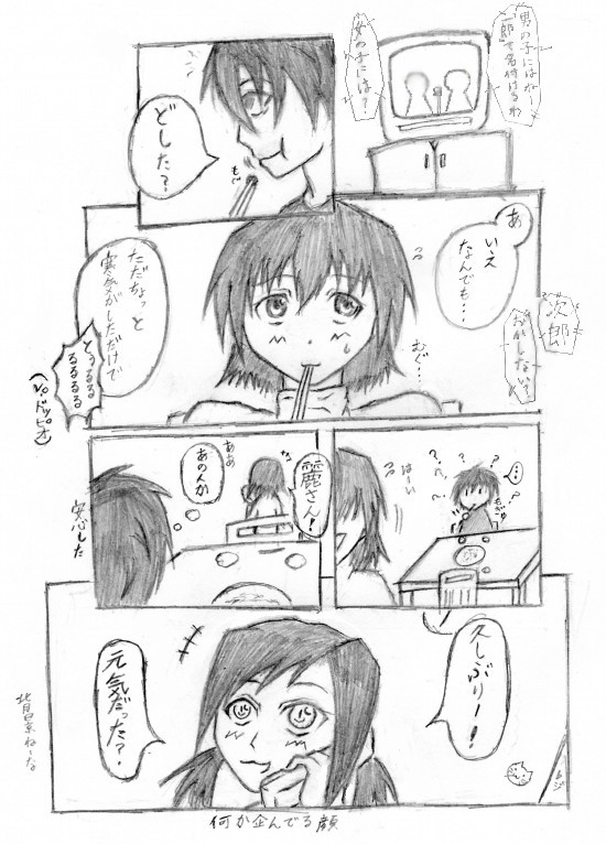 漫画は次のページが6割程度出来上がってます。 残り4割にどれだけ時間を使うか分りません。 小説は1割も出来てない状態です。 ひぐらしの暇潰し編を買おうと思うも 時間無いわ本屋に置いてないわで買えませんでした。 明日こそは。 そろそろ誕生日な訳ですが、それほど感慨も湧かずにだらだら過ごしております。 歳を取って何が嬉しいんだよとかそんな恩知らずな事を言う訳ではなくて、 妙に冷静なまま過ごしてしまうというか。 これはあれだ。ケーキを目の前にすればテンションが上がるんだ。 きっとそうだ。 あっ、でもひぐらしの人気投票とかが被ってると変にくすぐったい。